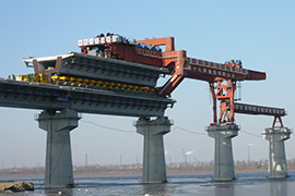- TPZ80節(jié)段拼裝架橋機(jī)成功應(yīng)用于世界最大跨度膠拼連續(xù)梁鐵路橋--京唐鐵路跨潮白新河特大橋