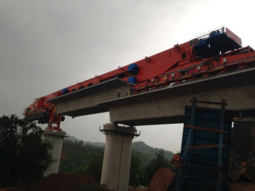截止到2017年4月17日,由通聯(lián)科技生產(chǎn)的900噸運(yùn)架一體式架橋機(jī)安全完成昌贛鐵路第100片梁的架設(shè)。 此臺(tái)架橋機(jī)自完成現(xiàn)場(chǎng)安裝調(diào)試投入使用以來(lái),憑借良好的性能和極高效率, 得到了客戶單位和監(jiān)理單位的一致好評(píng)。